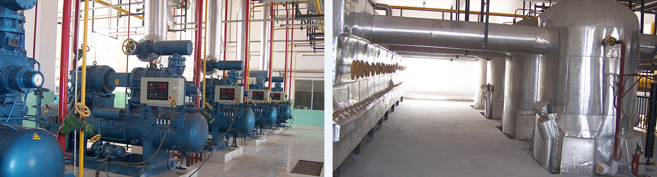 年產(chǎn)20萬噸標準化肉類,總存儲噸位2362噸,涵蓋凍結間、快速冷卻間 、冷藏間、冷卻間、胴體發(fā)貨間、副產(chǎn)暫存發(fā)貨間、鮮品儲藏間、副產(chǎn)品儲藏間、內(nèi)轉產(chǎn)品儲藏間,共計33間。制冷系統(tǒng)采用氨制冷系統(tǒng),末端冷風機加排管。
